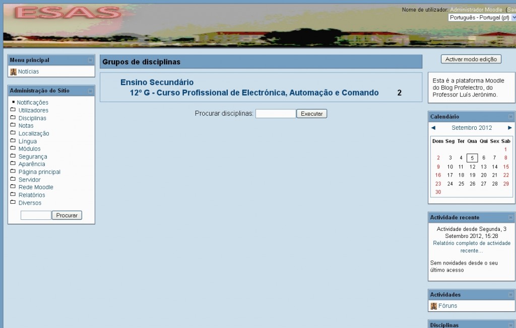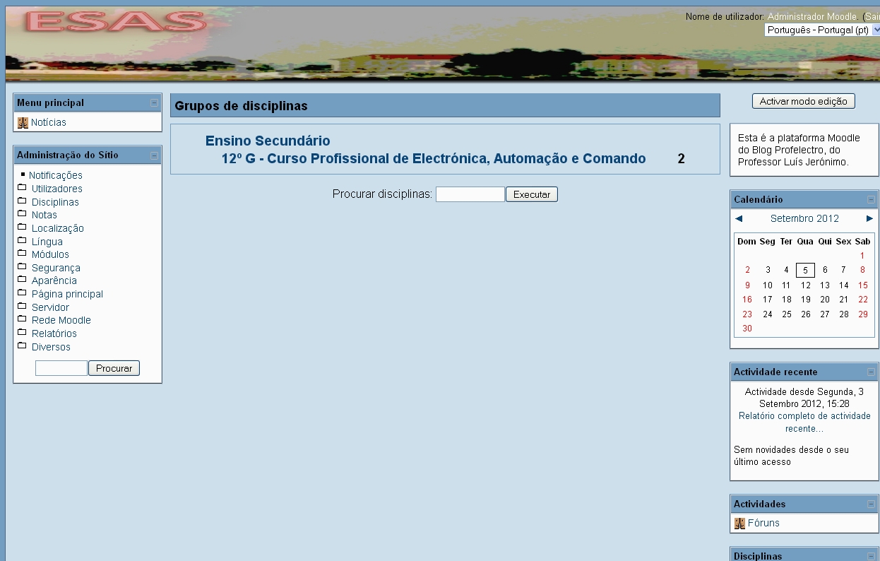 Serão lá colocados todos os recursos de cada disciplina, bem como actividades a serem desenvolvidas por vocês.