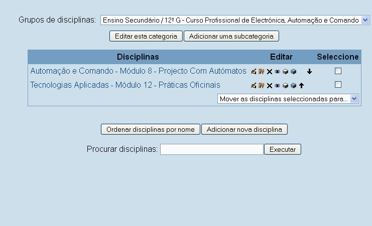 Presentemente estão lá duas disciplinas: