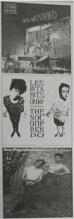 A reedição das três primeiras obras do grupo gaulês pauta-se por uma caldeirada de géneros musicais subjugados pelo imperativo de dar a conhecer ao mercado estrangeiro (grande parte das canções é cantada em inglês) um som e bonecos passíveis de mercantilização à escala internacional. As sonoridades e ritmos latinos confundem-se com a canção de cabaré, as lágrimas de Piaf com descarrilamentos Velvet Underground, “pastiches” do romantismo decadente dos anos 70 (Roxy, Bowie) são atropelados por fanfarras “funky” ao retardador e desatinos “ska”, a voz de Catherine percorre a auto-estrada que liga o grito gutural ao ronrom de cama. Engraçada a operação de mimetismo das inflexões vocais de Robert Wyatt levada a cabo em “Un soir, un chien”. Mas a musicalidade intrínseca da língua francesa, em alguns casos, não ajuda, cravando pregos no tímpano, sobretudo quando Catherine se deixa levar por arrebatamentos “new wave”. A instrumentação é predominantemente constituída por sintetizadores e caixas-de-ritmo, o que desde logo remete a estética do grupo para os salões sintéticos da pop electrónica. Não por acaso, o produtor do primeiro álbum é Conny Plank, anfitrião em Berlim de tudo o que desde os anos 70 vem sendo conotado com a electrónica, do “Kosmische rock” aos experimentalismos cibernéticos do ex-Cluster Dieter Moebius. Se quisermos procurar alguns parentes próximos dos Rita Mitsouko, poderemos encontra-los, obviamente, nos Sparks ou nos suiços Yello. Mas não é preciso sair de França, onde outros dois duos já antes tinham encetado estratégias semelhantes de pop sintetizada apontada aos ecrãs de cinema: Kas Product e Alésia Cosmos. O problema dos Rita Mitsouko é talvez o de não serem nem carne nem peixe. Ou seja, a multiplicidade de pistas e a pluralidade de sentidos que dispersam faixa a faixa nestes três álbuns não encontram uma contrapartida aglutinadora, dando a ideia de que a banda procurou apanhar um qualquer comboio em andamento, numa ânsia de diferença que acaba por se diluir no ambiente geral de confusão. Falta-lhes o humor e o distanciamento dos Yello, a acidez corrosiva dos Kas Product e o radicalismo dos Alésia Cosmos. Os Rita Mitsouko absorveram com avidez 40 anos de cultura pop e quiseram regurgitá-la toda de uma vez. A digestão ficou completa. Poderiam ter encontrado um caminho em pseudobaladas como “La fille venue du froid” e “Vol de nuit”, mas preferiram a sofisticação da produção barroca entregue a Tony Visconti em “The No Comprendo” e “Marc et Robert”. Ou ter-se-ão guardado para os filmes. O “videoclip” de “Marcia baila”, extraído do primeiro álbum, foi comprado pelo Museu de Arte Moderna de Nova Iorque. As sessões de gravação de “The No Comprendo” foram filmadas por Jean-Luc Godard. Bandas sonoras que fariam boa figura em desenhos animados.