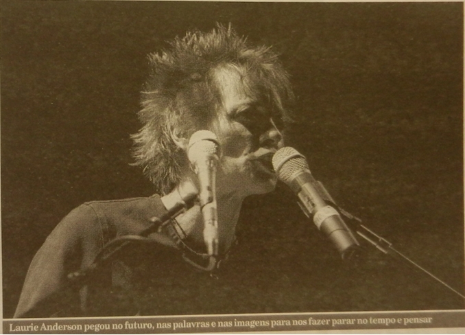 Na primeira, Laurie evidenciou os seus dotes de contadora de histórias. Os monólogos substituíram a música. Na segunda, pelo contrário, a norte-americana de cabelo espetado tocou violino, cantou e chegou-se mais ao conceito da artista rock ‘n’ rol da nova idade.