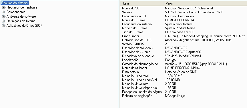 menu Iniciar >> Todos os Programas >> Acessórios >> Ferramentas do Sistema >> Informações de Sistema.